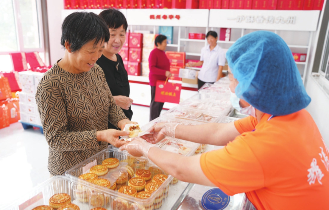 中秋旺季雖過,但齊河縣大黃鄉(xiāng)北段村的耀濤食品廠生產(chǎn)車間里依然繁忙,工人們在自動化流水線旁將一箱箱糕點封裝打包。