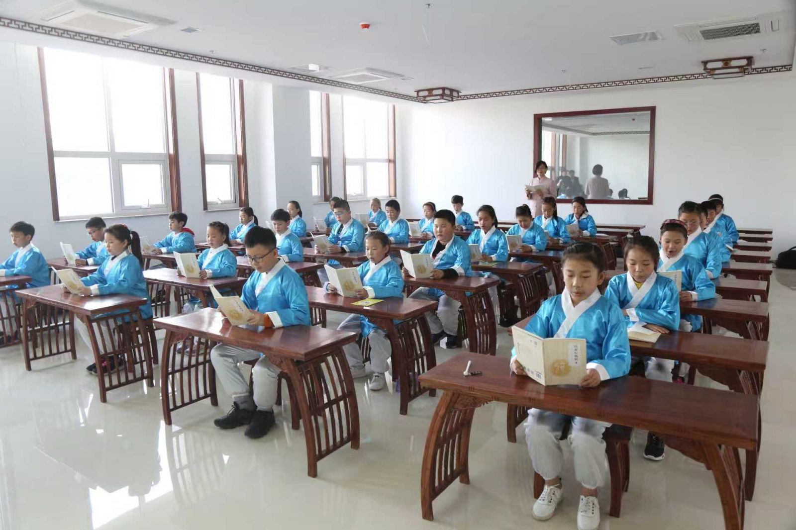 “昔在黃帝,生而神靈,弱而能言......”每到周末下午,臨朐縣中醫(yī)院里就會(huì)響起孩子們朗朗的讀書聲,這是國(guó)醫(yī)啟蒙館的孩子們?cè)谏险n。自開設(shè)以來,國(guó)醫(yī)啟蒙館已培育了10期共300多名孩子。