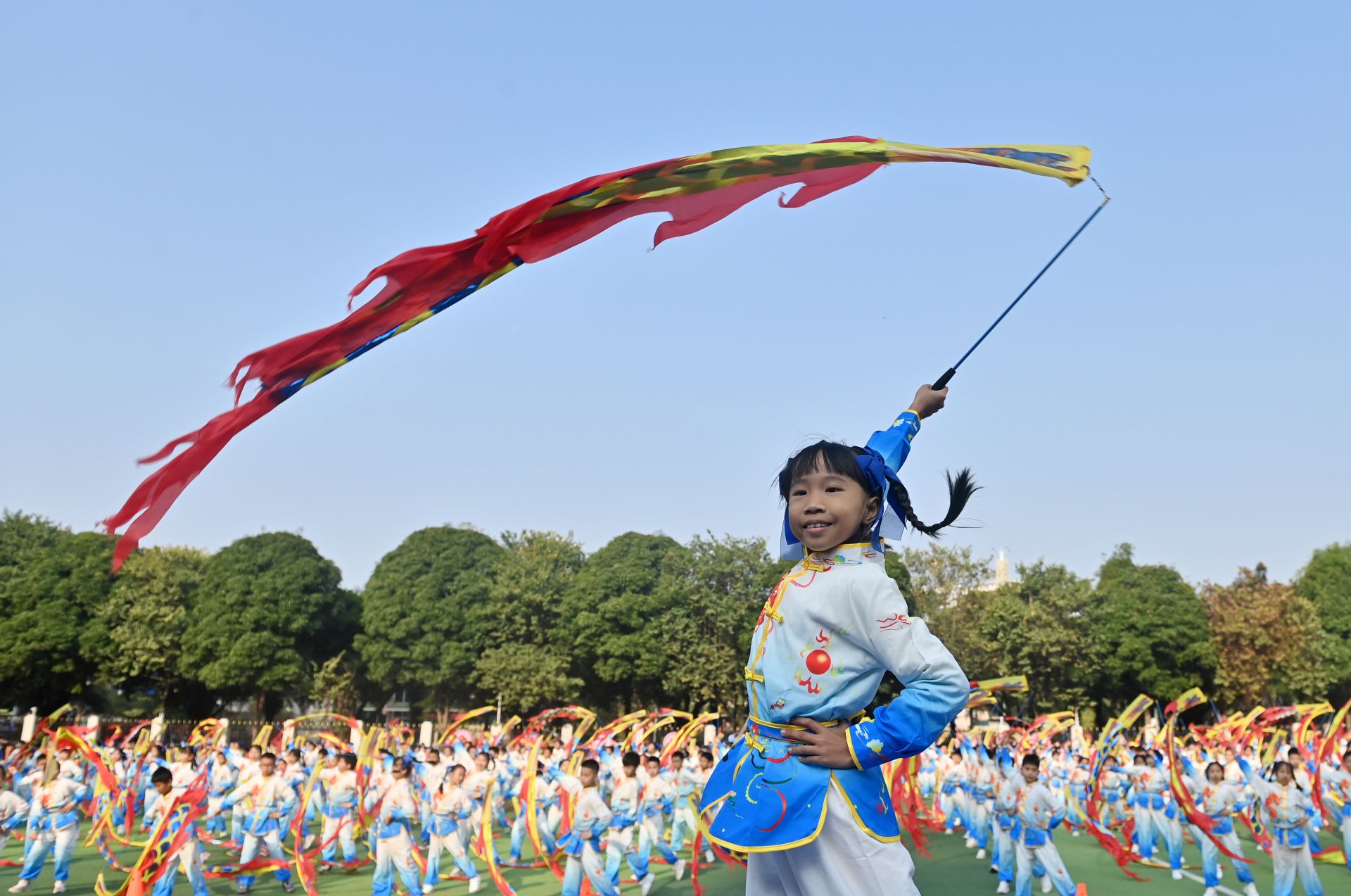 12月9日,在廣西南寧市濱湖路小學(xué)教育集團(tuán)濱湖校區(qū),學(xué)生在“體育節(jié)”開幕式上表演團(tuán)體操。