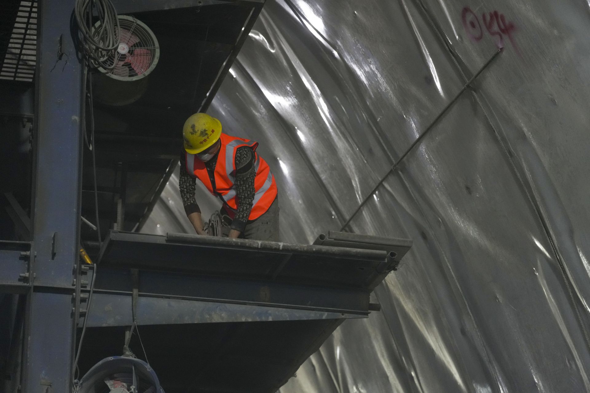 1月12日,中鐵十一局集團有限公司的工作人員在雄忻高鐵北太行山隧道內(nèi)施工作業(yè)。