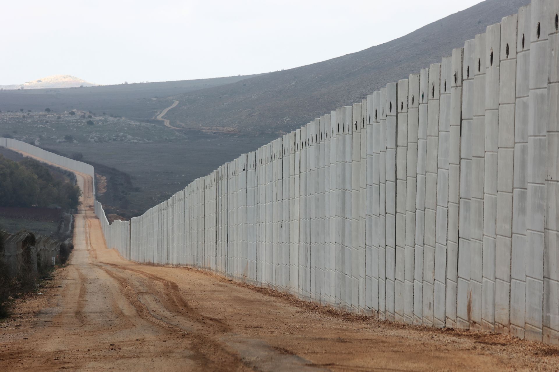 這是1月12日在以色列-黎巴嫩邊境沿線以色列一側(cè)拍攝的混凝土隔離墻。