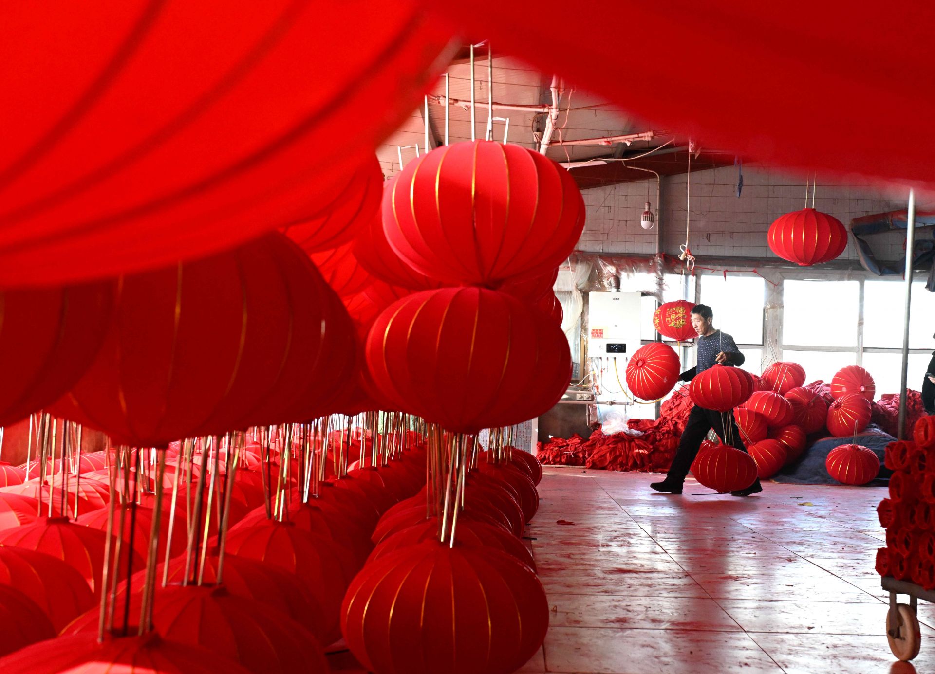 1月15日,工人在石家莊市藁城區(qū)屯頭村一家宮燈廠制作宮燈。