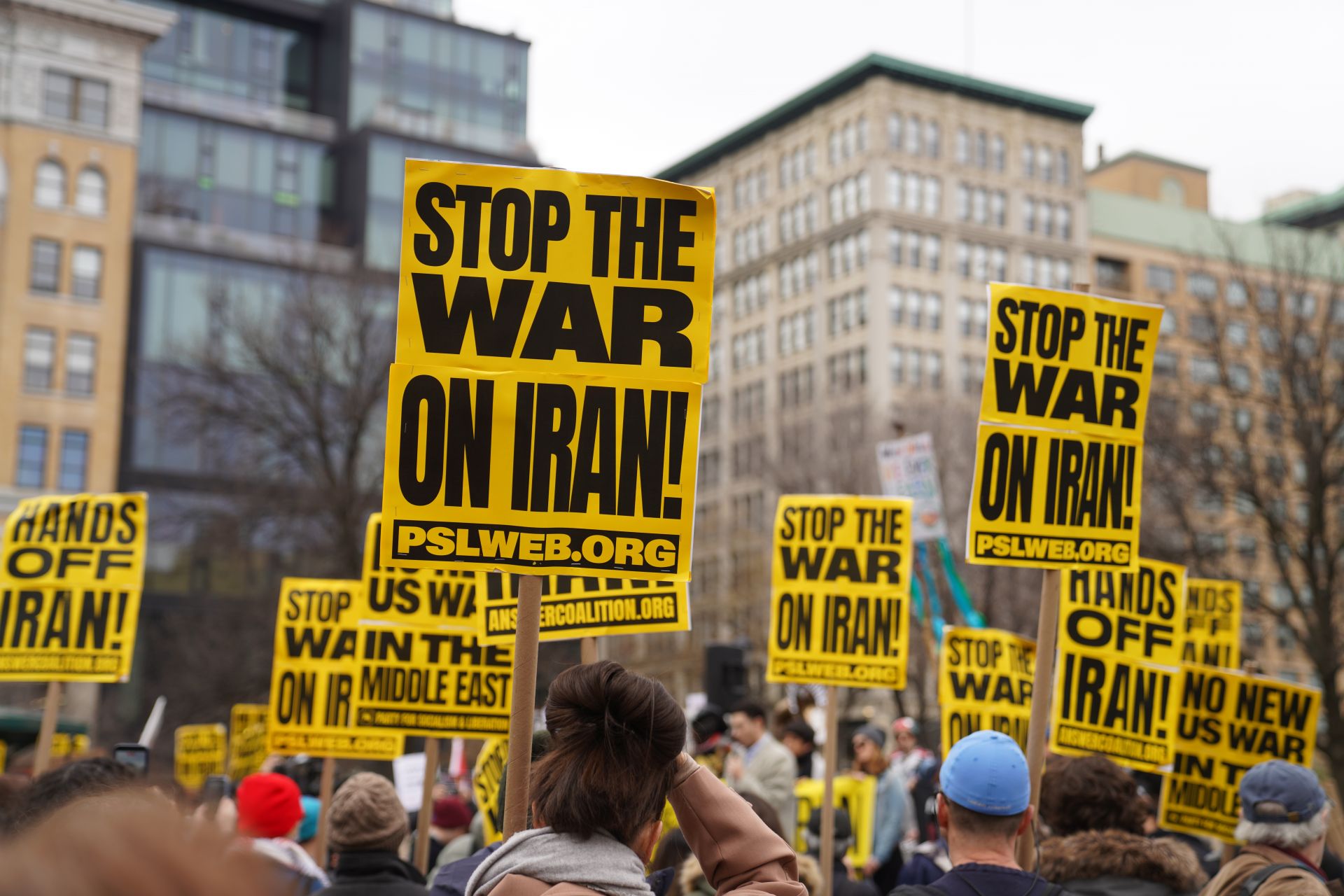 3月7日,人們?cè)诿绹?guó)紐約參加集會(huì)游行,抗議美國(guó)和以色列對(duì)伊朗發(fā)動(dòng)軍事打擊。