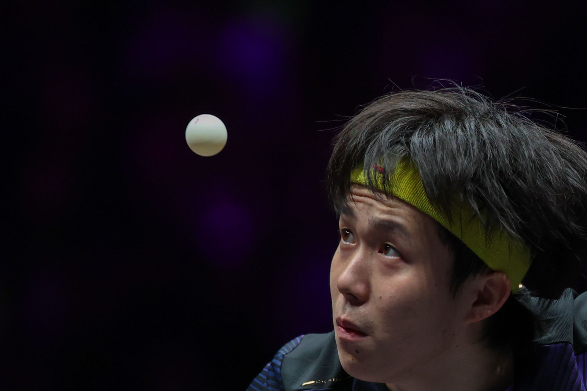 3月11日,王楚欽在比賽中發(fā)球。