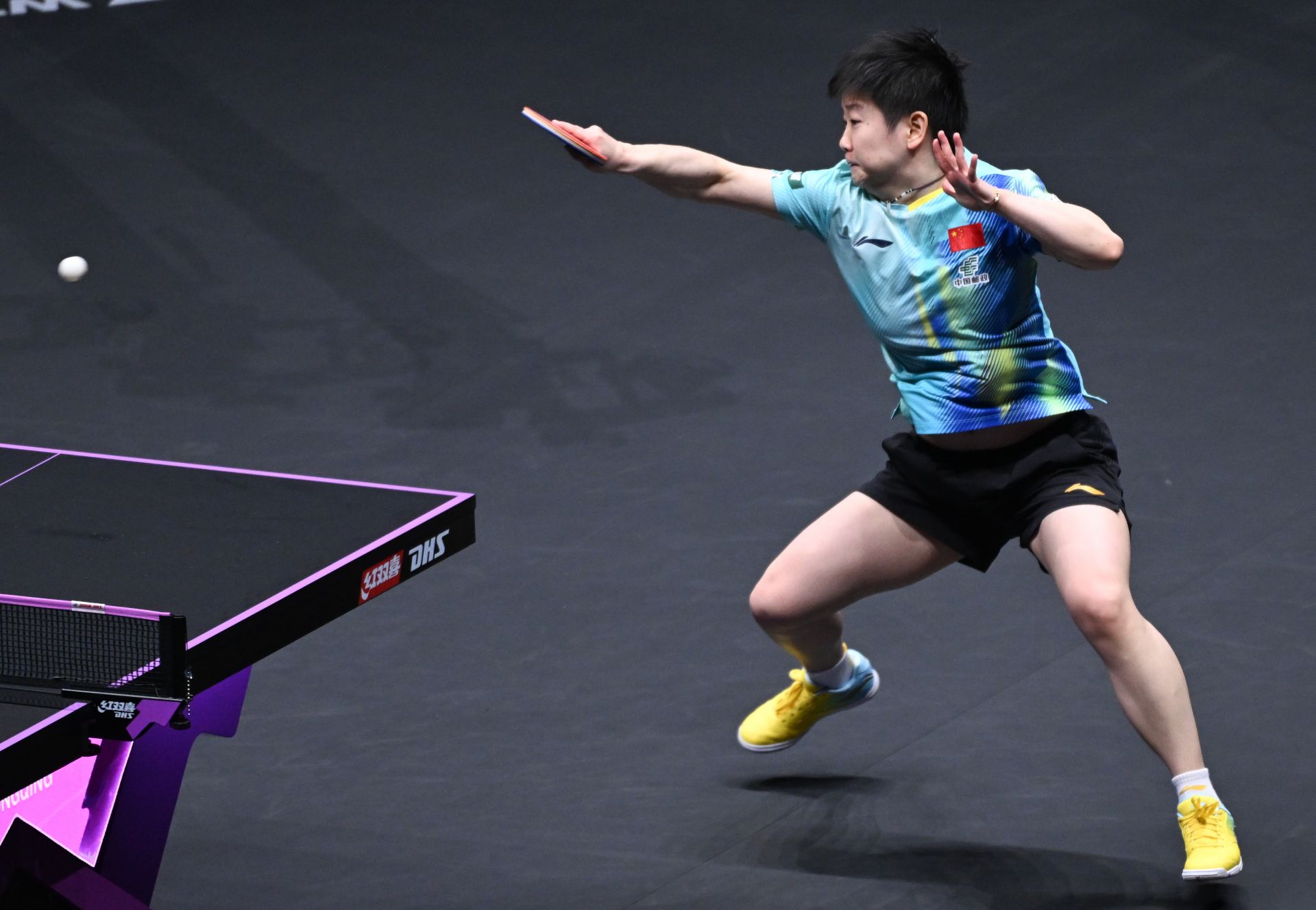 3月12日,孫穎莎在比賽中回球。