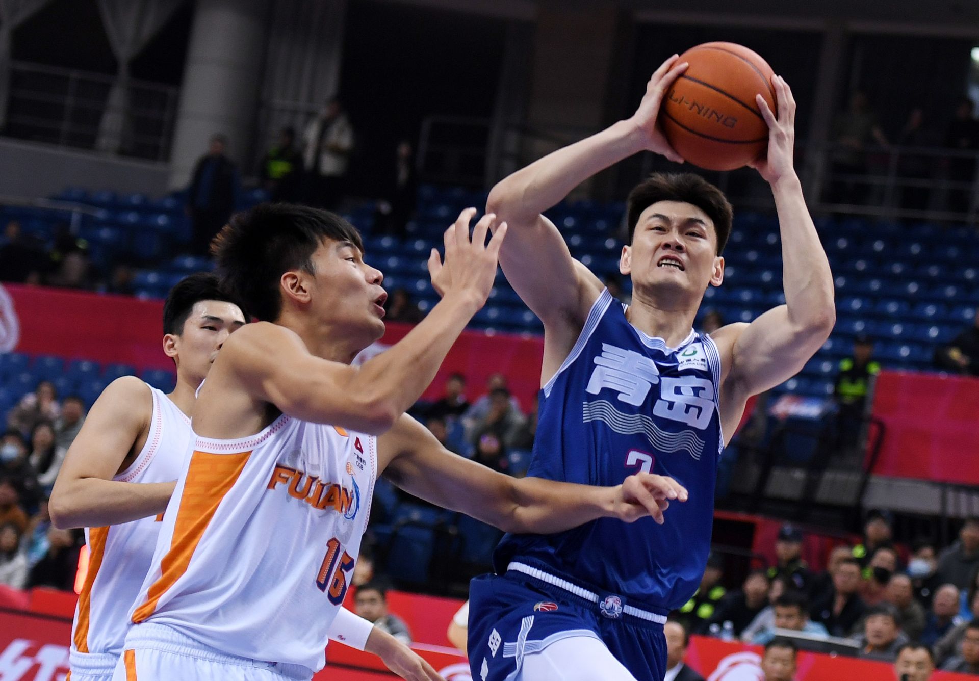 3月12日,青島嶗山啤酒隊(duì)球員王睿澤(右)在比賽中進(jìn)攻。