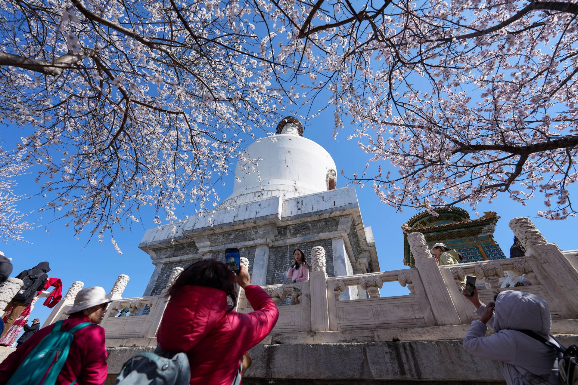 春風(fēng)拂過(guò),京城桃花綻放,吸引游人駐足,欣賞美好春光。