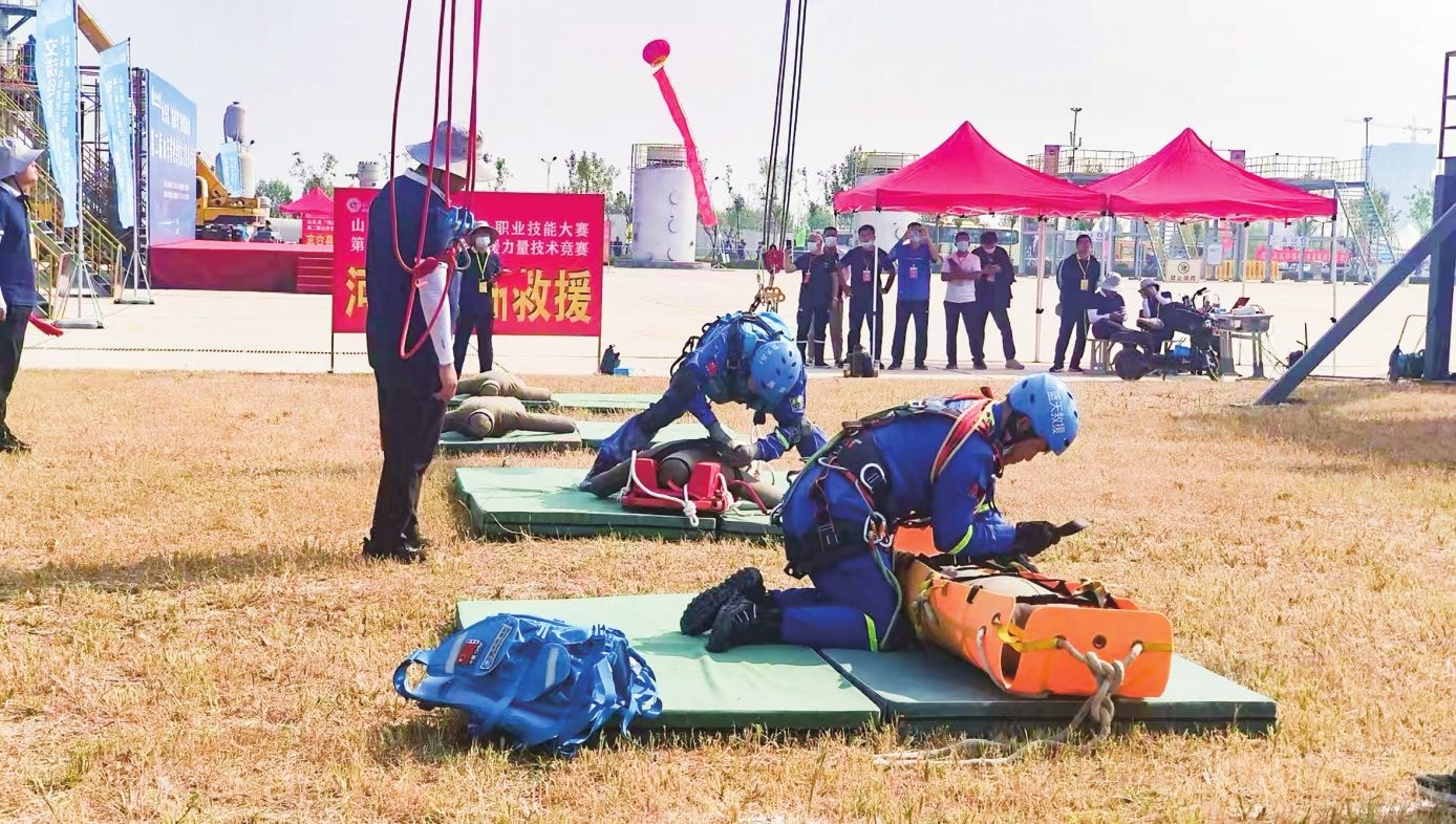 禹城藍天救援隊隊員在技能競賽比賽現(xiàn)場