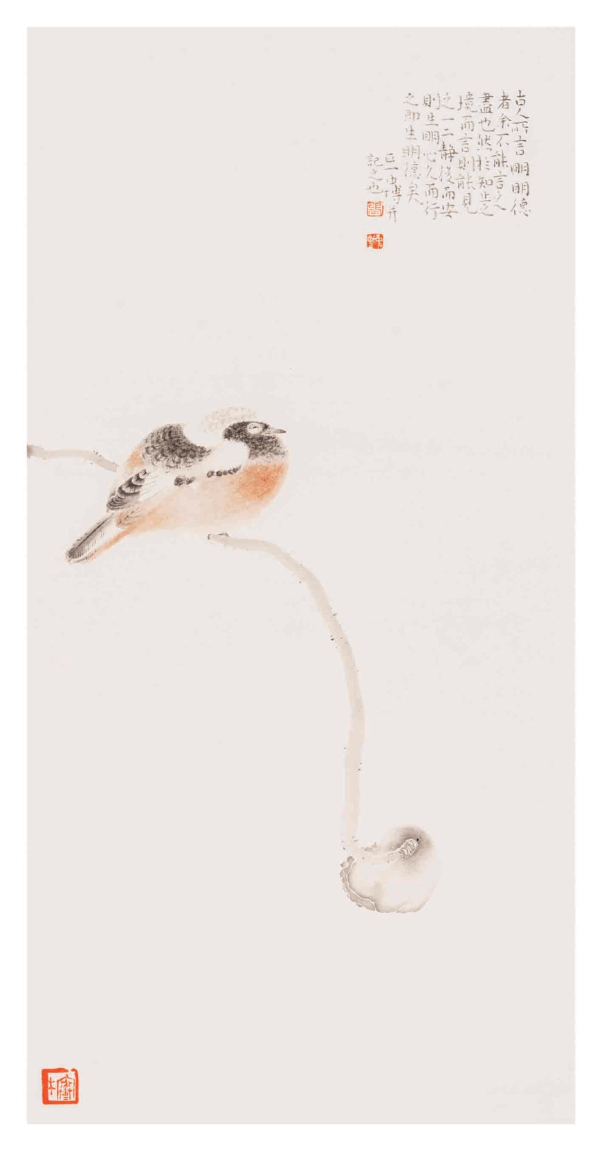 這份執(zhí)著,讓伍小東深受觸動(dòng):“他身上有非常強(qiáng)烈的求知欲,還有對(duì)繪畫不可或缺的激情與沖動(dòng),那種不放棄、不退縮的精神,很難得?!币舱沁@種赤誠與執(zhí)著,讓張中博如愿進(jìn)入廣西藝術(shù)學(xué)院,攻讀中國畫專業(yè)花鳥方向碩士研究生,師從伍小東,開啟了藝術(shù)修行的新征程。