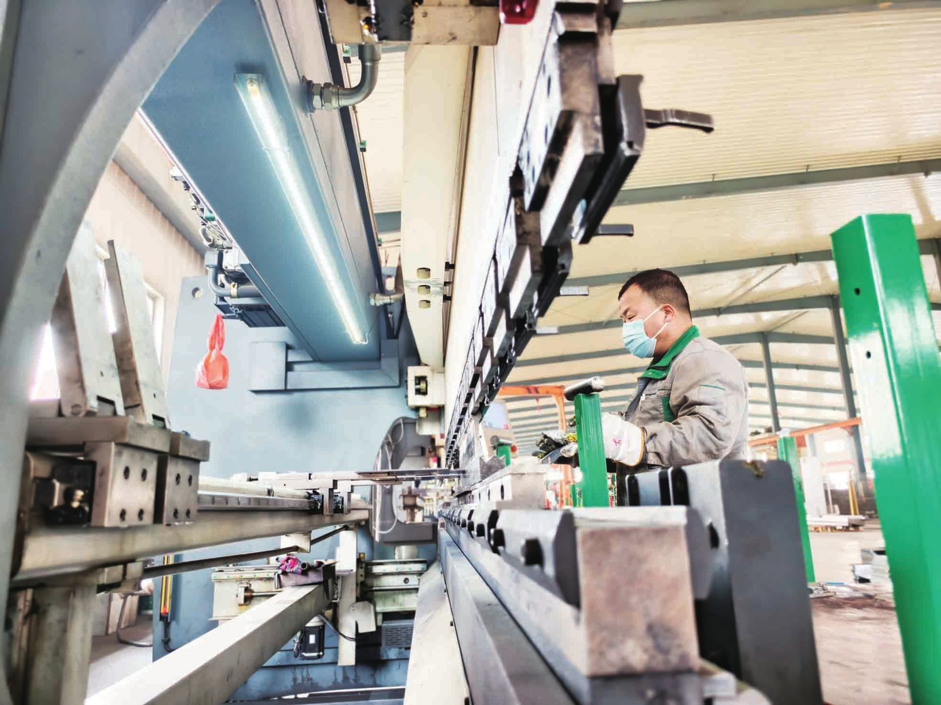 思代爾公司生產(chǎn)車間,工人在進(jìn)行數(shù)控折彎。記者石少軍 攝